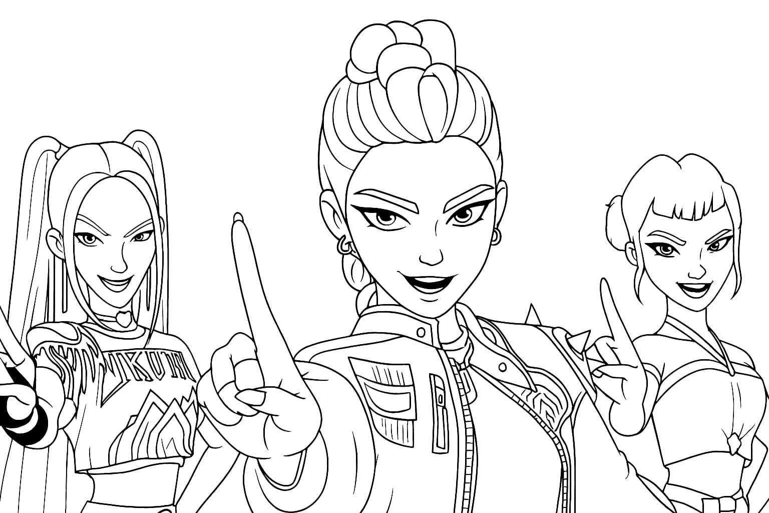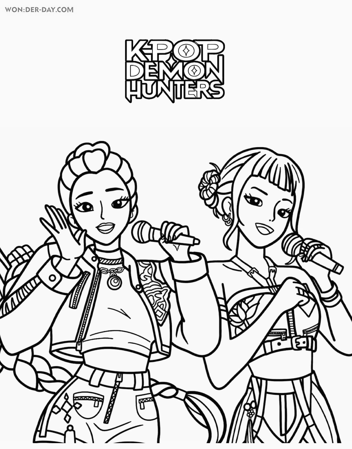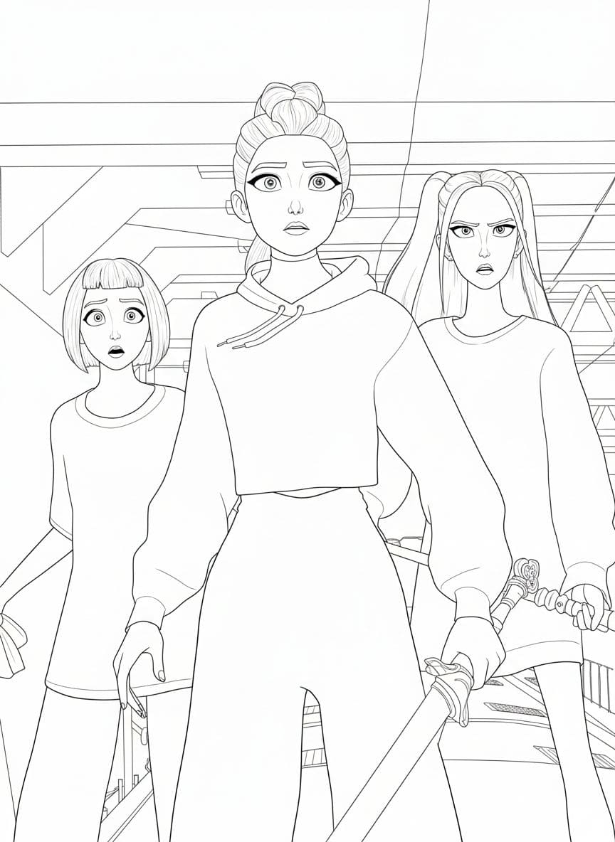 Préparez-vous pour une aventure palpitante dans un monde où la musique rencontre la magie ! Dans les coloriages « Kpop Demon Hunters », vous rencontrerez des idoles K-pop talentueuses aux pouvoirs incroyables. Elles combattent les démons grâce à leur musique, leur danse et leurs armes uniques. Choisissez vos couleurs préférées et créez avec nous vos propres versions de ces musiciens héroïques !