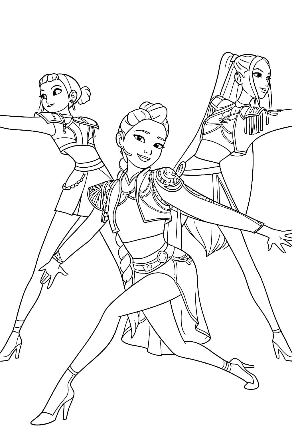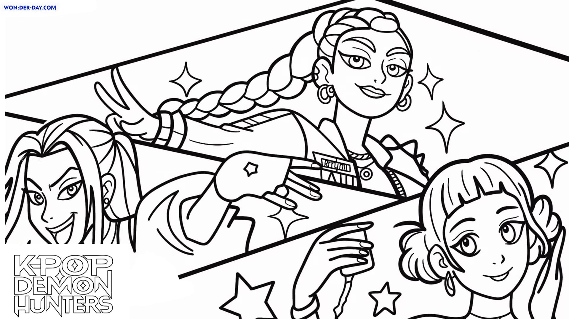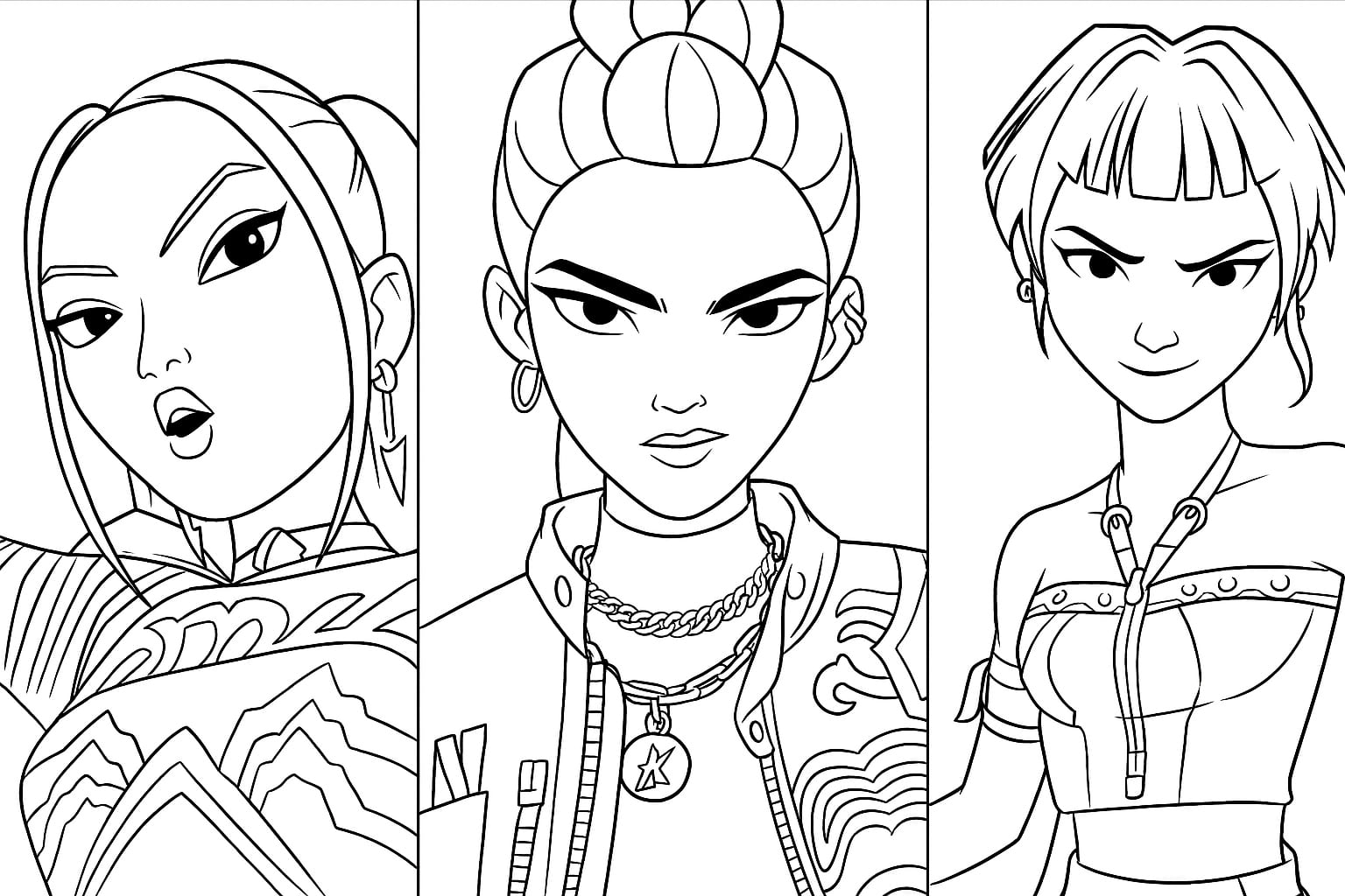 Préparez-vous pour une aventure palpitante dans un monde où la musique rencontre la magie ! Dans les coloriages « Kpop Demon Hunters », vous rencontrerez des idoles K-pop talentueuses aux pouvoirs incroyables. Elles combattent les démons grâce à leur musique, leur danse et leurs armes uniques. Choisissez vos couleurs préférées et créez avec nous vos propres versions de ces musiciens héroïques !