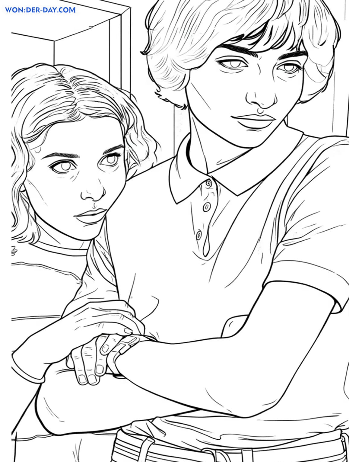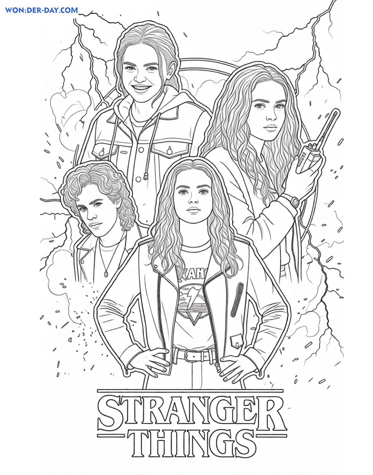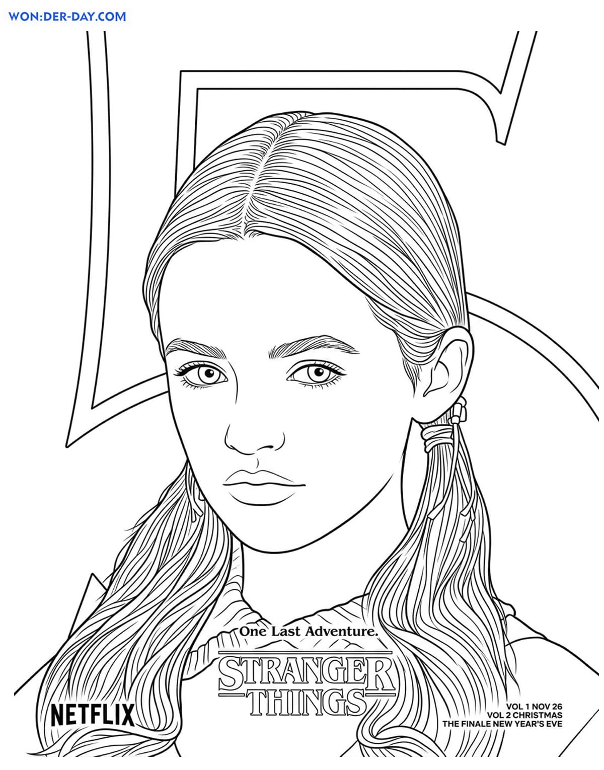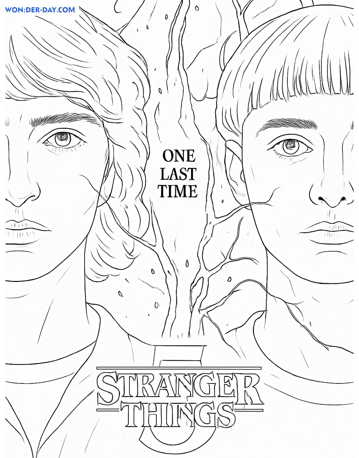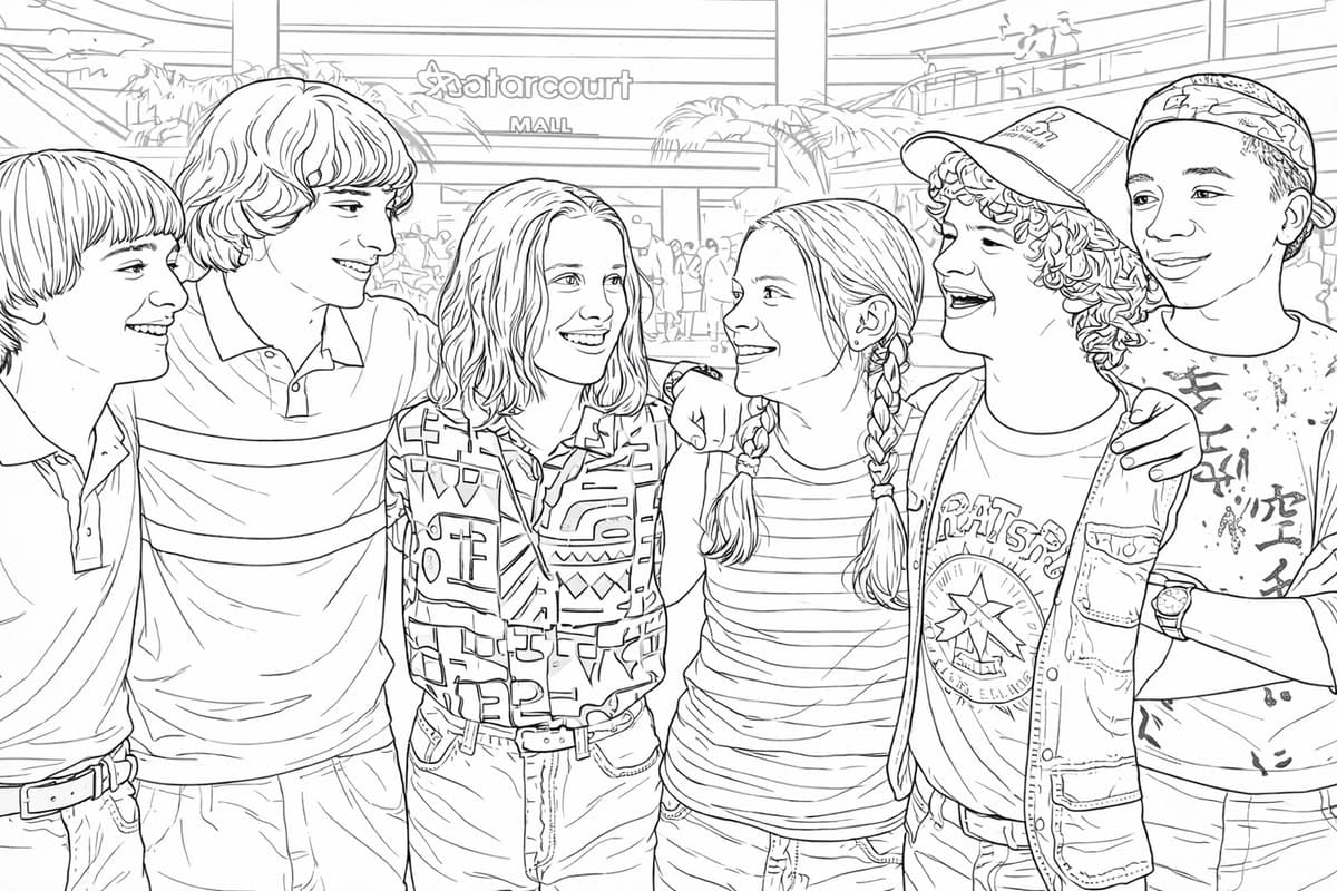 С раскрасками Очень странные дела можно окунуться в мир фантастики, полным опасностями и приключениями, а также познакомиться с главными героями. Для этого вам нужно открыть понравившуюся картинку, скачать и распечатать.